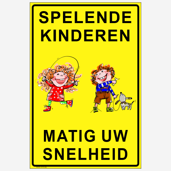 Aandacht! TRAAG RIJDEN Spelende kinderen, gele-zwart v3 achtergrond