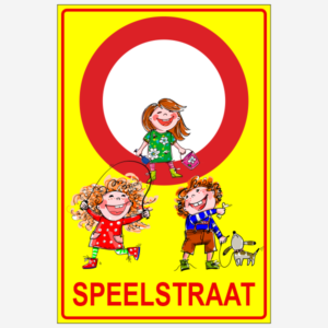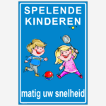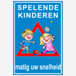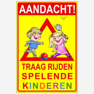 Spelende kinderen. Matig uw snelheid, gele-zwarte achtergrond